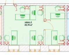 В помещении 3 окна, поделено перегородкой на 2 кабинета. Подходит для комфортного размещения 6 рабочих мест (розетки установлены).