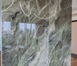 Зона ресепшн декорирована плиткой, имитирующей камень.