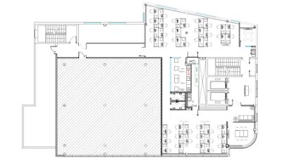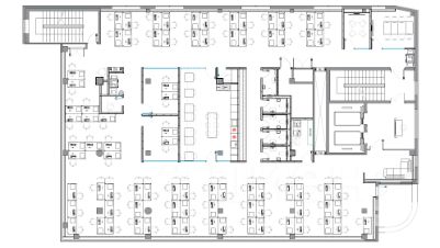 В каждом офисном блоке, кроме рабочих мест: переговорные комнаты, кабинки для звонков, кофе-поинт, санузлы, ресепшн, серверные, мягкие зоны, гардеробы.