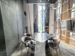Апартамент имеет линейную планировку. Просторная зона ресепшн, 3 кабинета, Кухня со всей необходимой техникой и мебелью, санузел и просторная гардеробная или склад. На 1 этаже ЖК есть 2 переговорные комнаты, которые можно использовать для встреч, заранее забронировав, это бесплатно.