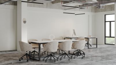 Отличный офис для вашей компании. Площадь 80,7 кв.м., на 3-м этаже офисного кластера, уже С МЕБЕЛЬЮ, с новым дизайнерским ремонтом, полностью готов к эксплуатации с ноября 2025 года. На фото - текущее состояние офисной части, заканчивается меблировка.