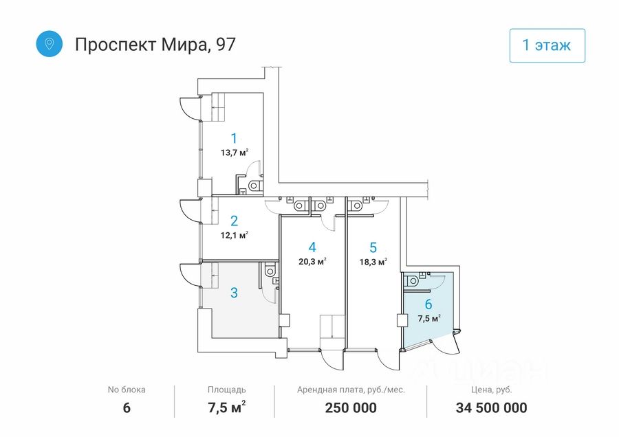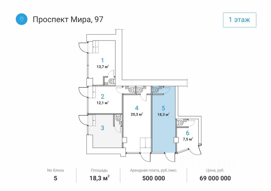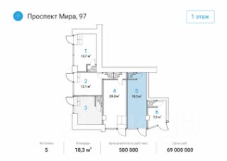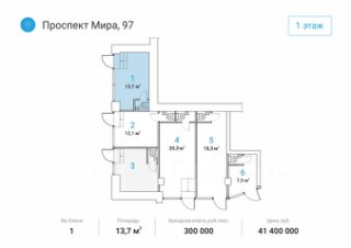 Помещения находятся на первом этаже дома, в шаговой доступности от метро "Алексеевская" - 1 минута пешком. Отдельный вход c первой линии в каждый блок. Место для размещения вывески. Помещения расположены в крупном сложившемся жилом районе с высокой плотностью застройки и развитой инфраструктурой. В окружении находятся "ВДНХ", Телецентр и парк "Останкино", Деловой центр с апарт-комплексом "Парк Мира", театр танца Аллы Духовой "Todes".