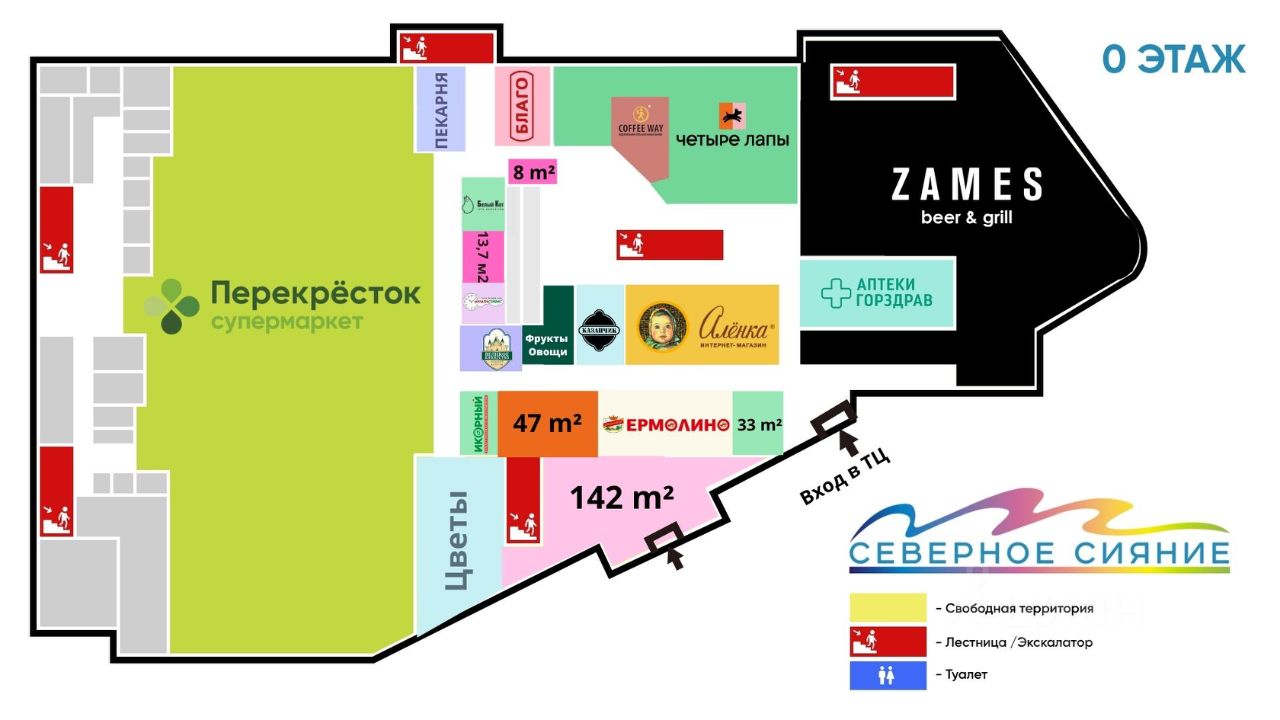 Помещение в крупном районном ТЦ Северное Сияние в прикассе супермаркета Перекресток около входа в ТЦ