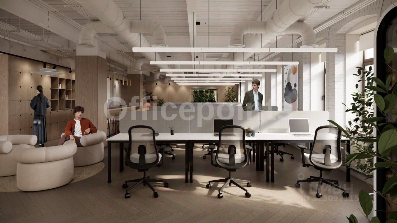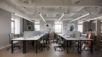 В помещении выполнена дизайнерская отделка, смешанная планировка. Офис на 58 рабочих мест. В аренду включены: комплектация офисной мебелью и бытовой техникой в кофе-зонах, эксплуатация инженерных систем и мест общего пользования, коммунальные платежи, интернет, ежедневный клининг. На фото изображены рендеры проекта. Приточно-вытяжная система вентиляции, центральная система кондиционирования. В наличии наземная парковка.