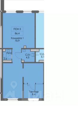 Комната 2: 33,3 м² (возможно зонирование под ваши нужды)