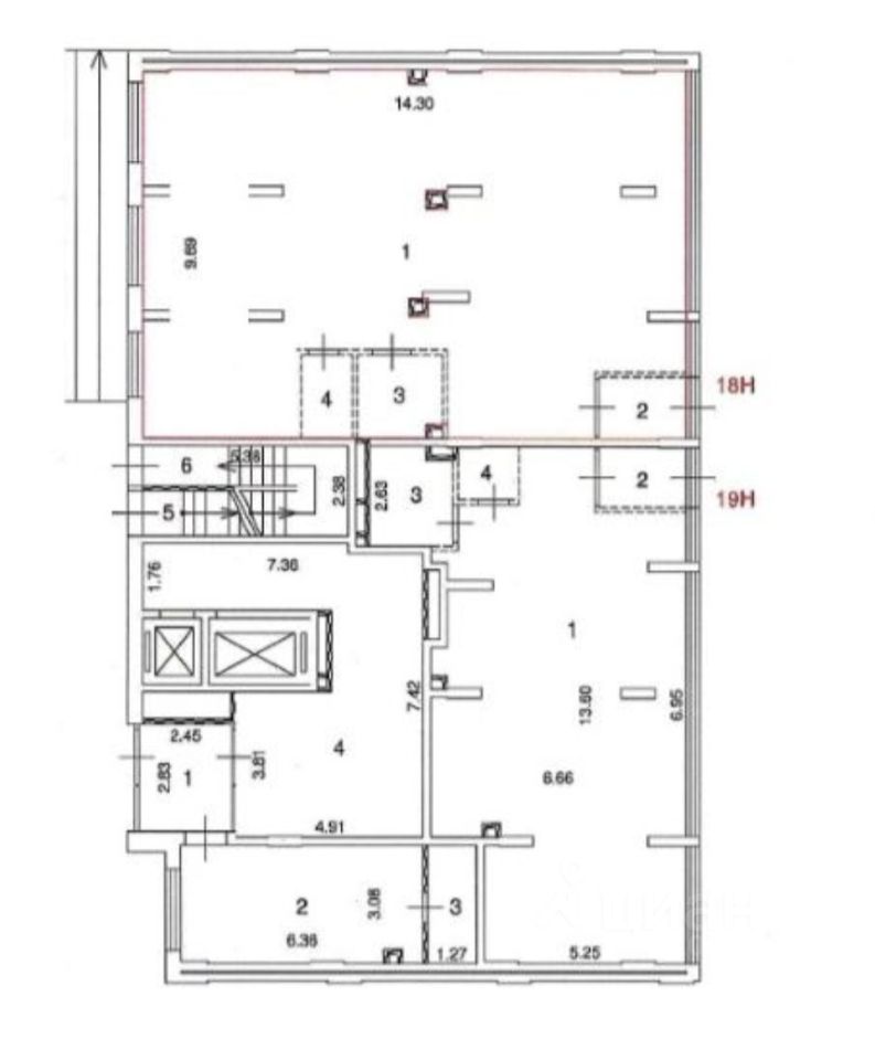 возможно объединение с соседним помещением (площадь соседнего 88.6 метров)