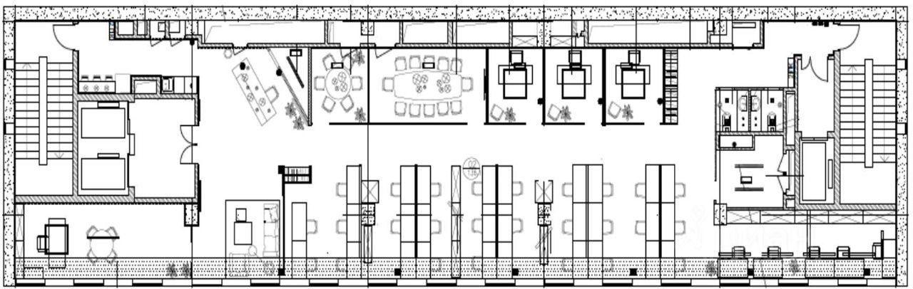 Переговорные 8, кабинеты 7, кофе поинт, встроенная tea station между переговорными, большая кухня, серверная, ресепшн, архив,