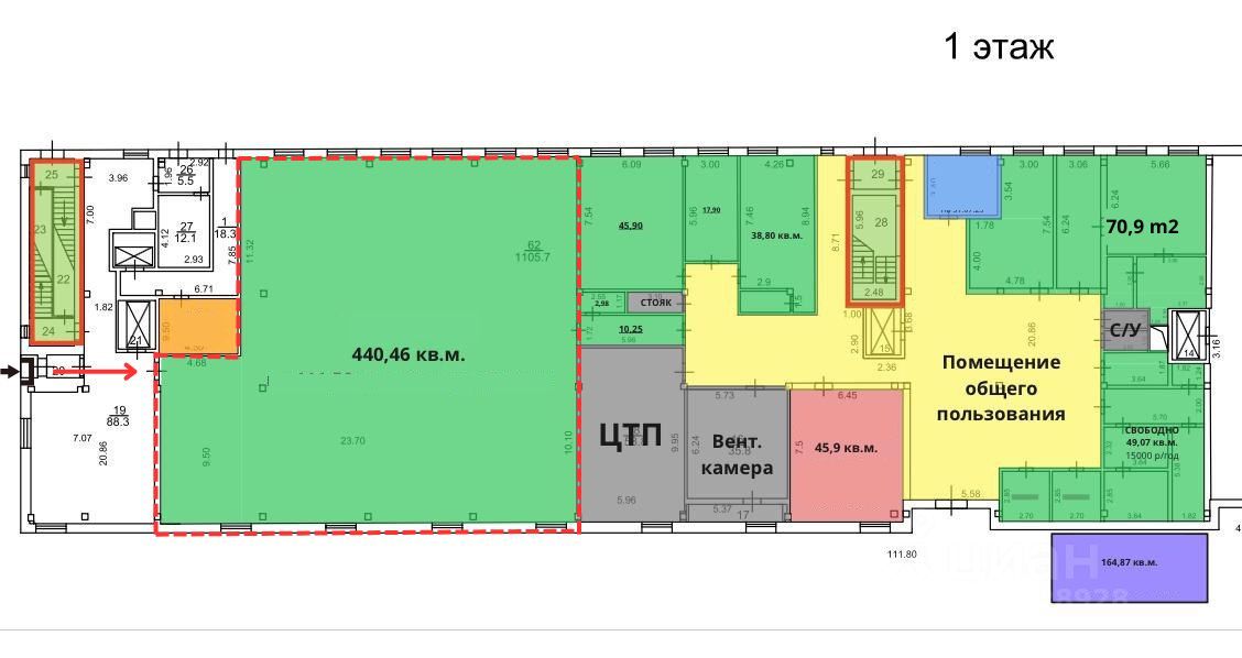 - Общая площадь 440 м2 (возможно арендовать метраж больше или меньше)