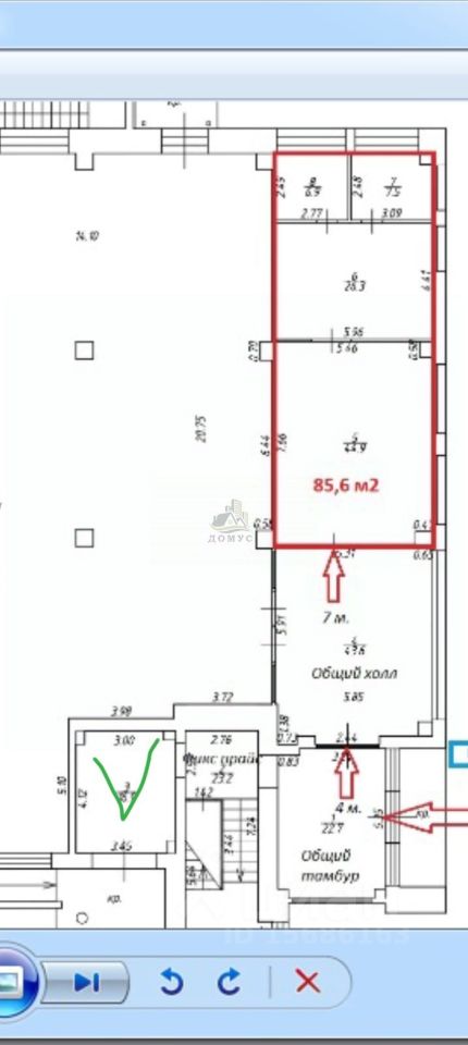 Арт. 30930558 Агентство недвижимости "ДОМУС" предлагает в аренду торговое помещение 85,6 кв.м. с высокой проводимостью, прикассовая зона. 21 кВт, мокрая точка, вытяжка. без комиссии!.