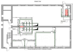 Комбинированная планировка: open-space, кабинеты, помещение для кухни, серверной, склада, санузлы на каждом этаже.