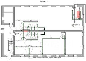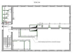 Комбинированная планировка: open-space, кабинеты, помещение для кухни, серверной, склада, санузлы на каждом этаже.
