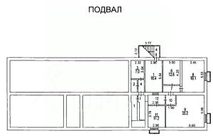 Подвал без окон, доступ по лестнице, 2 комнаты (на плане 6 и 9), потолок 2.20, проход через дверь.