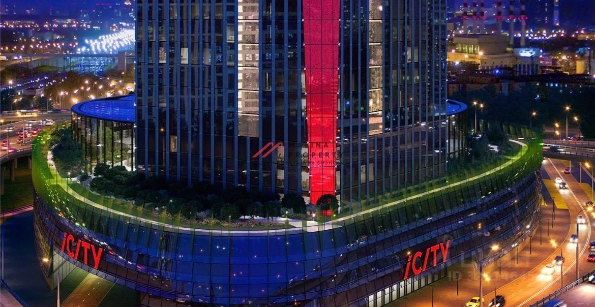 Офис 174 м2 располагается в на 16-м этаже бизнес центра "iCity" (башня Space Tower). Помещение без отделки, открытая планировка. Центральная система кондиционирования и приточно-вытяжная система вентиляции. Панорамное остекление.
