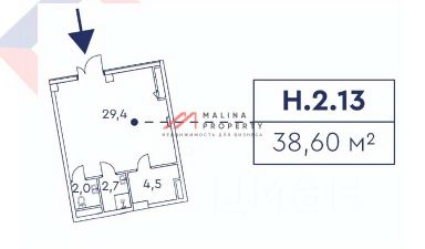 Аренда помещение 38,6 м2, располагается на 1 этаже, открытая планировка, отдельный вход с фасада, высота потолка 5 м, сплошные витринные окна по фасаду. Место под рекламу.
