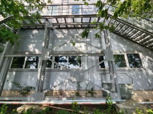 Здание стоит на первой линии улицы, имеет собственный земельный участок с собственной парковкой на 8 машин (возможно поставить будку шиномонтажа), плюс стихийная бесплатная городская парковка на пощадке на 25 авто слева от здания и на 50 авто справа от здания.