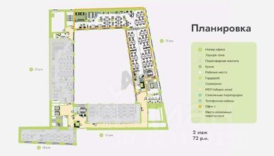 Пространство отличается уютной атмосферой и функциональной планировкой, соответствующей стандартам класса А и рассчитано на комфортное размещение до 72 рабочих мест.