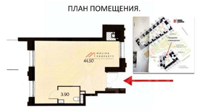 Помещение 47,9 м2, располагается на 1 этаже, открытая планировка, отдельный вход с фасада, высота потолка 4,15 м, витринные окна по фасаду. Электрическая мощность 9 кВт. Место для размещения рекламы.