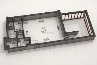 - Двухуровневая планировка: первый уровень — высота потолков 5,8 м; второй уровень — 3,3 м.