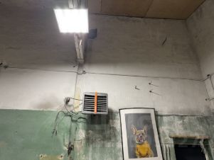 ОГРОМНАЯ ВХОДНАЯ ДВЕРЬ, так же есть вход из коридора. Пол ровный бетонный.