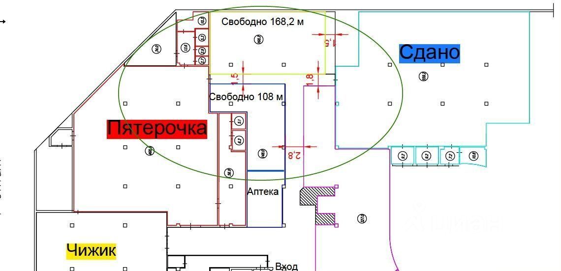 Коренные арендаторы: ПЯТЕРОЧКА, ЧИЖИК, Аптека и еще 1 Сетевой крупный арендатор.