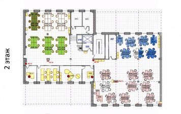 Практичное офисное пространство 1583м2 с отделкой, планировкой и мебелью от крупной европейской компании полностью готово к размещению порядка 200 сотрудников. Планировка смешанная - несколько кабинетов, переговорные, четыре зала для сотрудников, с\у, кофе-поинт, подсобные помещения.