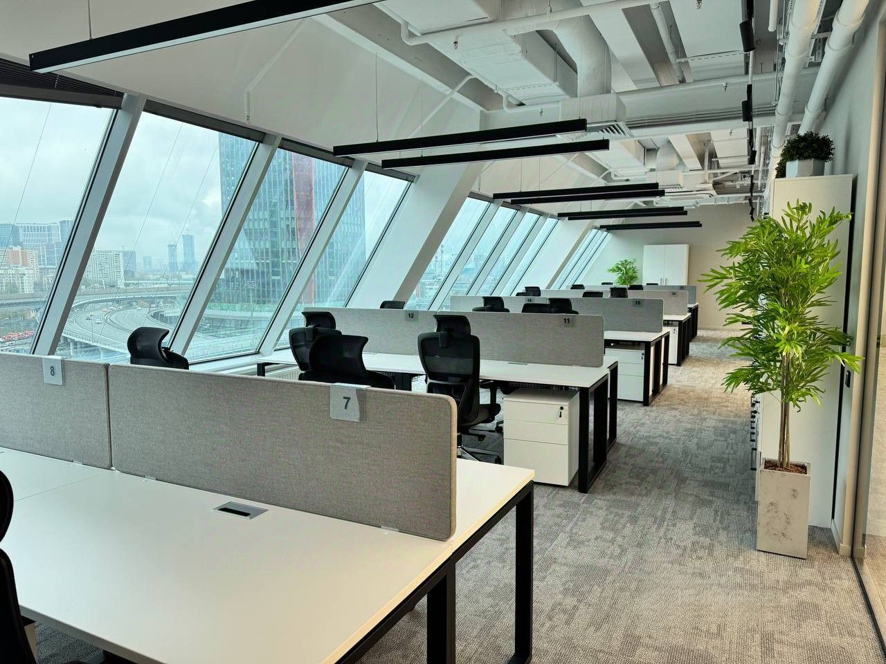 С мебелью. Планировка - смешанная. Приточно-вытяжная вентиляция. Центральное кондиционирование. Интернет, телефония. Охрана. Видеонаблюдение. Система контроля доступа. Лифты: 11 пассажирских лифтов , 9 скоростных панорамных лифтов Otis, 3 грузопассажирских. Подземная парковка. Наземная парковка.