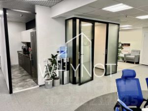 - функциональная планировка (welcome зона, зона ресепшн, пространство open space, 2 переговорные комнаты, 2 мини-кабинета, мини-кухня)