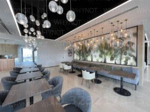 На 13 этаже бизнес-центра расположена зона бесплатного коворкинга, бар и большая открытая терраса. На втором этаже расположен большой фудхолл.