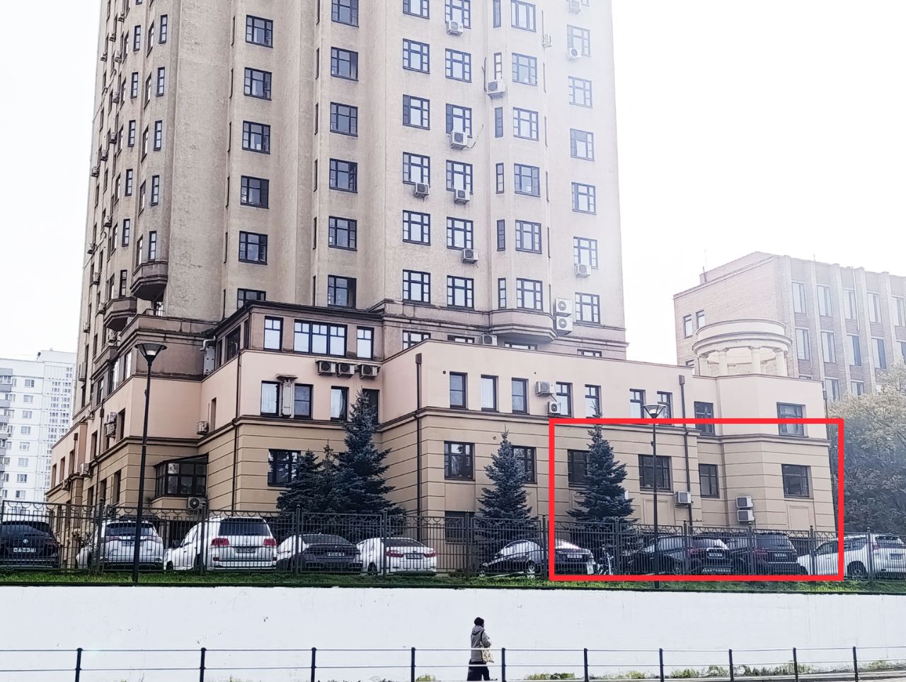 Здание расположено на первой линии Можайского шоссе, при этом окна офиса выходят на озелененную территорию двора с газонами и охраной на въезде . Из окон открывается прекрасный вид на примыкающий парк и пруд.