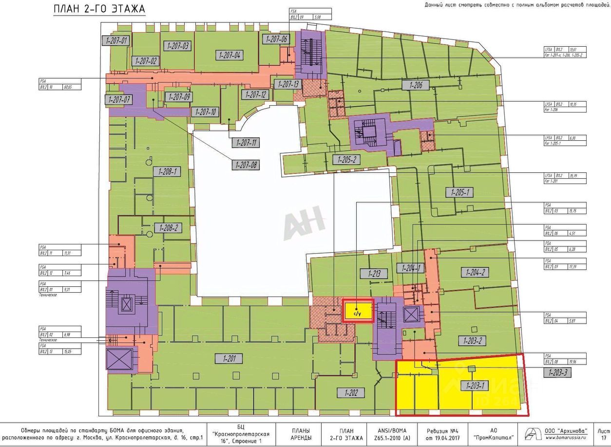 Лот 964633 Предложение от Собственника! Предлагается к сдаче в аренду офисное помещение общей площадью 163,77 кв.м., расположенное по адресу: Стр. 1, этаж 2, помещение 2-203-1. Площадь по данным БТИ составляет 148,88 кв.м., включая офисную часть 138,88 кв.м. и санузел 10,00 кв.м. Планировка смешанная, с коридорной системой, составляющей 10% от общей площади.