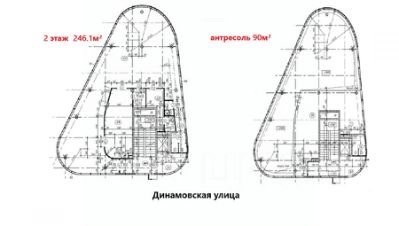 Помещение двухуровневое: 2 этаж площадью 246.1 м² и антресоль площадью 90 м².