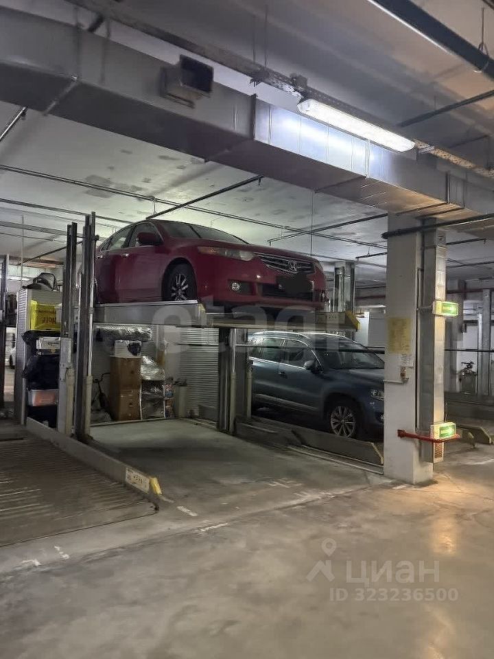 Готово к аренде парковочное место с подъемником, возможно использовать для парковки двух автомобилей, либо использовать второй уровень как зону для хранения сезонных вещей: резины, санок, велосипедов