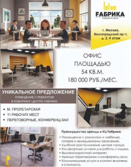 Современный комфортный офис 54 кв м, где можно просто прийти и работать — без лишних забот. Всё уже готово для продуктивной работы вашей команды.