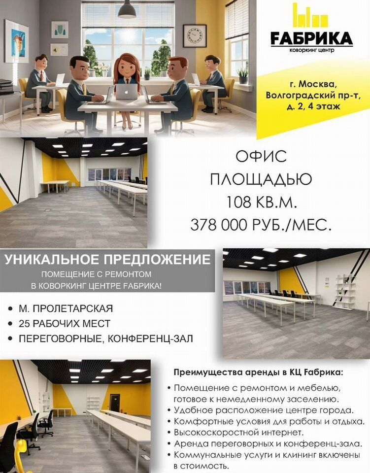 Офис на 25 рабочих мест у м. Пролетарская — ВСЁ ВКЛЮЧЕНО!