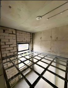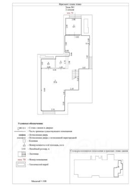 Площадь 1-го уровня 65,5 кв.м., площадь 2-го уровня 25 кв.м. Высота потолков 1-го уровня 3,3 м, высота 2-го уровня 2,5 м.