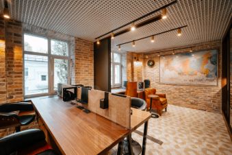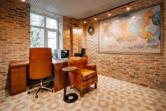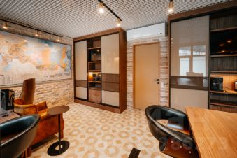 - зона отдыха в зоне руководства: кресло из натуральной кожи буйвола и кофейный столик для принятия напитков