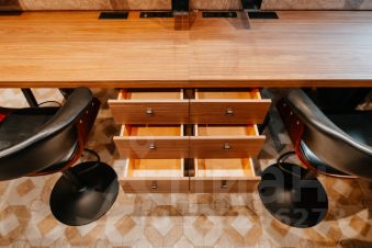 - все столы укомплектованы встроенными розетками и зарядками для мобильных телефонов и гаджетов
