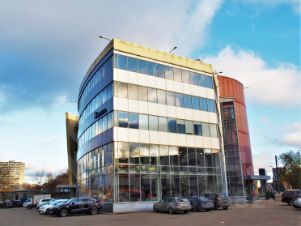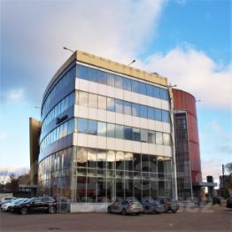 Отдельно стоящее здание общей площадью 12 500 кв.м., из которых: 1-й этаж - 2 563 кв.м.; 2-й этаж - 2 123 кв.м.; 3-й этаж - 2 397 кв.м.; 4-й этаж - 2 397 кв.м.; 5-й этаж - 2 397 кв.м.; Технический этаж - 639 кв.м.; Вертолетная площадка - 300 кв.м. В здании есть несколько ворот-заездов для автомобилей. Выход на эксплуатируемую кровлю..