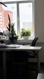 Высокие потолки (3 м), окна с двух сторон — вид на город и на лес.