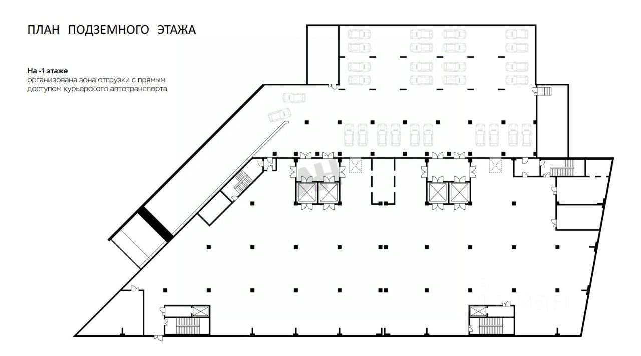 Свободная планировка, потолок 8 метров, колонны 8х8 м, пол бетон-антипыль, нагрузка 720-1200 кг/м2, 4 грузовых лифта (5 тонн), 2 пассажирских лифта. Пандус (+0,9м) 80 м, автоматические секционные ворота. Подземный этаж для отгрузки с прямым доступом курьерского автотранспорта. Электроснабжение 2 МВт, II кат.