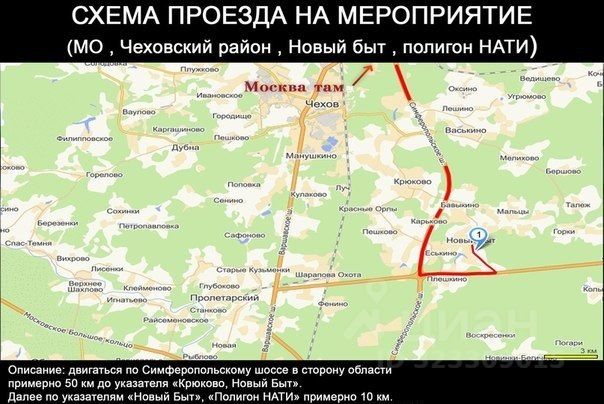 Часть земельного участка площадью 8000 кв. м со съездом на участок через шлагбаум с асфальтированной дороги на село Новый Быт в 700 метров от трассы А-108, из земель промышленности, транспорта, связи, и иного назначения с кадастровым 50:31:0060334:3, площадью 8000 кв. м., расположенный по адресу: Московская обл., Чеховский р-н, в районе п. Новый Быт Баранцевского СП (полигон). На участке расположена бетонная дорога 1 км. шириной 7,5 м. и разворотный участок.