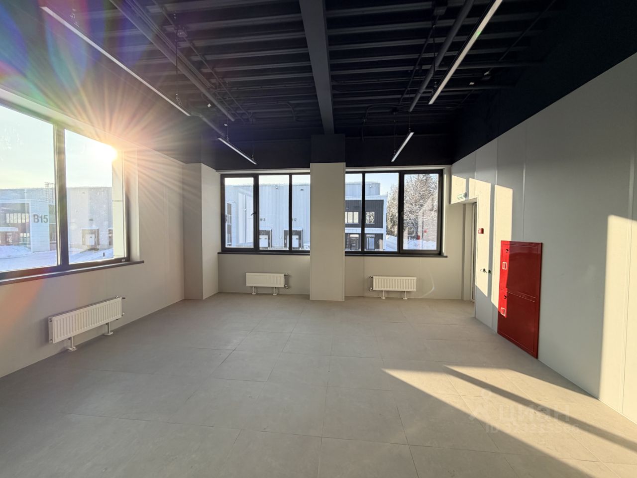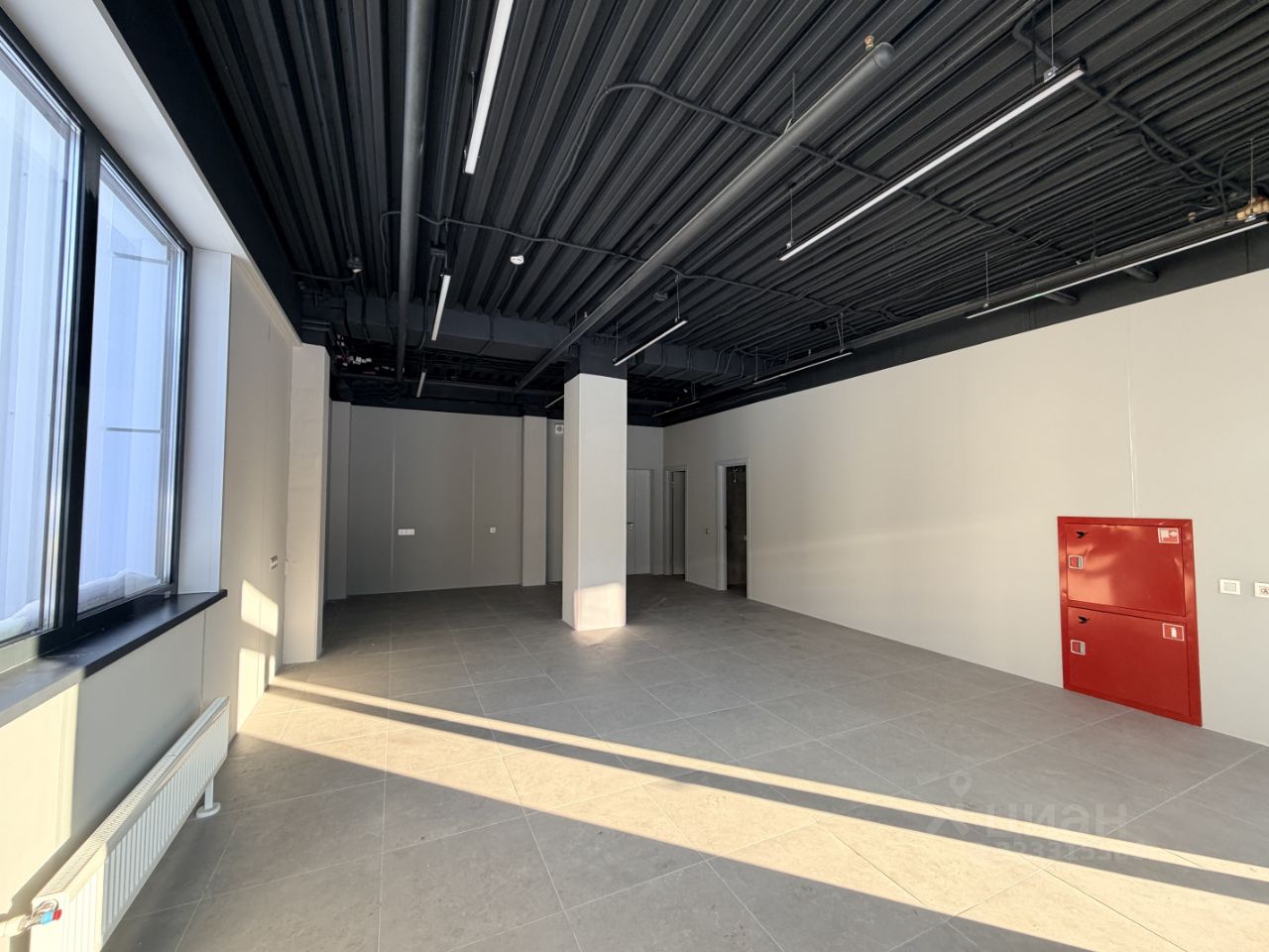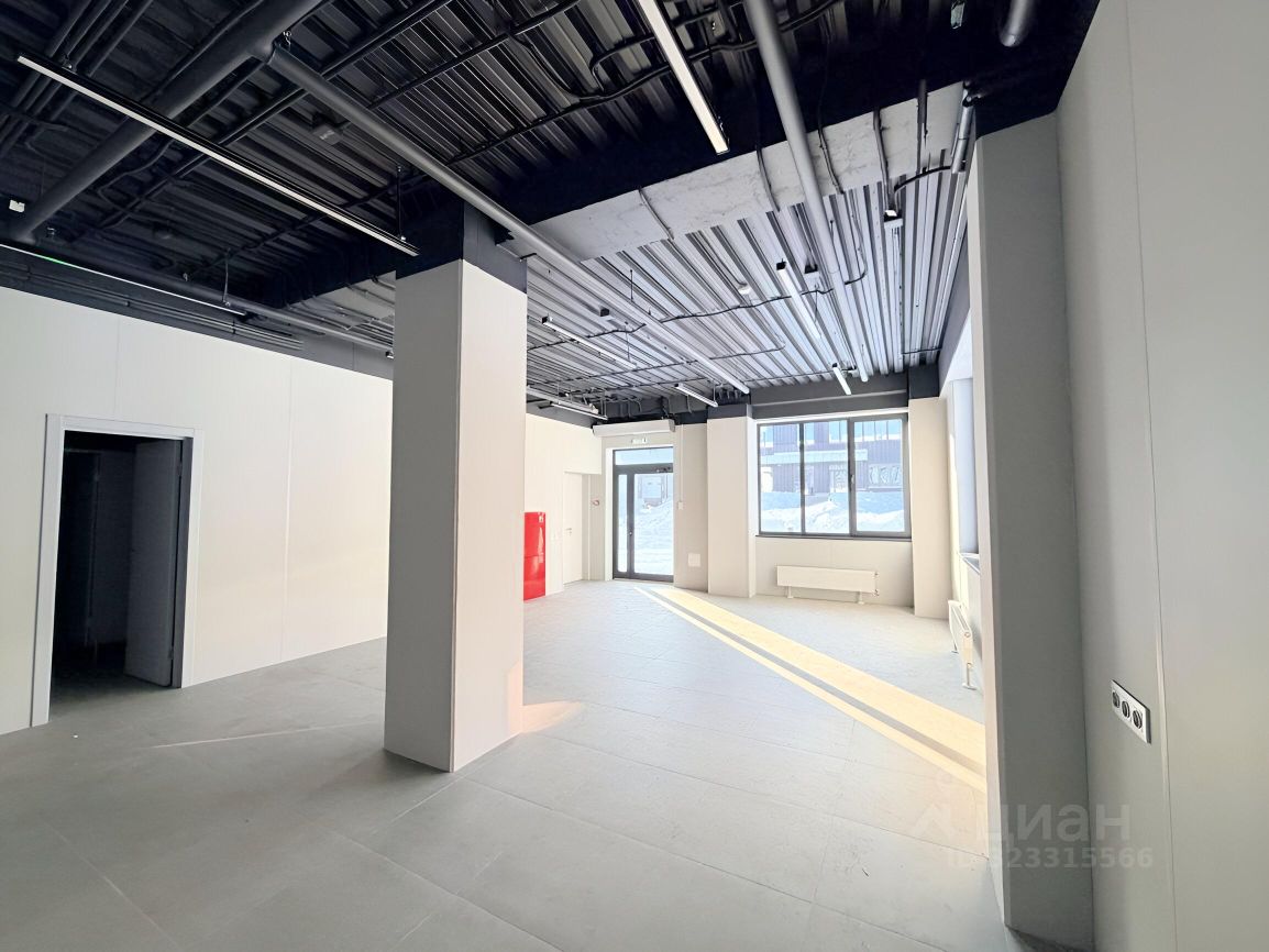 Офисная часть с готовой отделкой, двумя санузлами и отдельным входом с улицы.