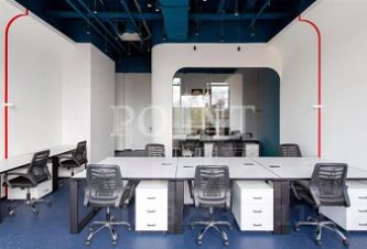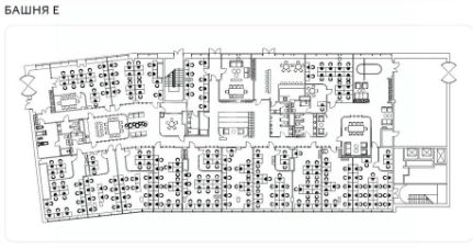 Смешанная планировка: зона ресепшн, кабинеты на разное количество рабочих мест, open-space, несколько переговорных разных размеров, лекторий, скайп-кабины, спортивный зал с душевой, кухонная зона, с/у в блоке.