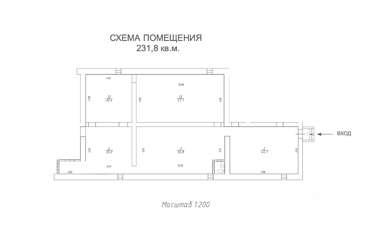 Помещение свободного назначения 231,8 м2, большая площадь, отдельный вход.