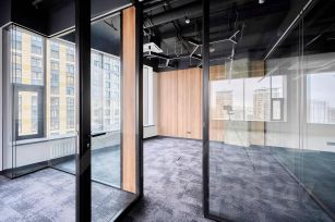 Кабинет, переговорная, кухня, опен-спейс, входная зона. Указанная цена включает эксплуатационные расходы и НДС. Также в бл. время установим системы хранения, гардеробная, и кухня. Можем предложить 1 парковочное место.