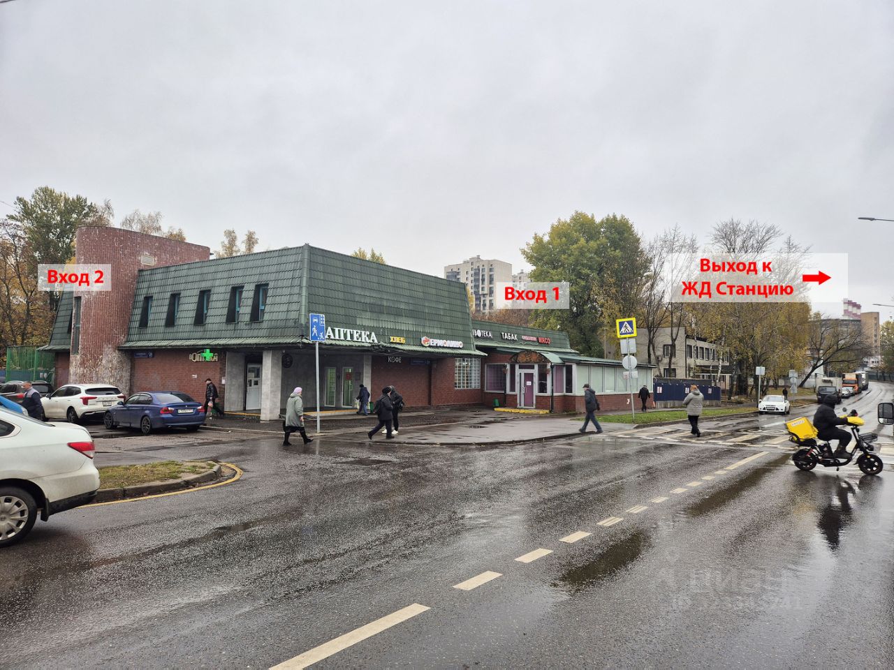 Помещение находится на первой линии на оживленной улице рядом с пешеходным переходом в густонаселенном жилом районе. Активный пешеходный траффик по переходу к ЖД станции.