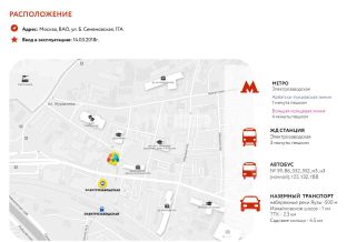 Удачное месторасположение в 50 метрах от станции метро Электрозаводская и в трех минутах от железнодорожной станции. Рядом расположены остановки общественного транспорта.