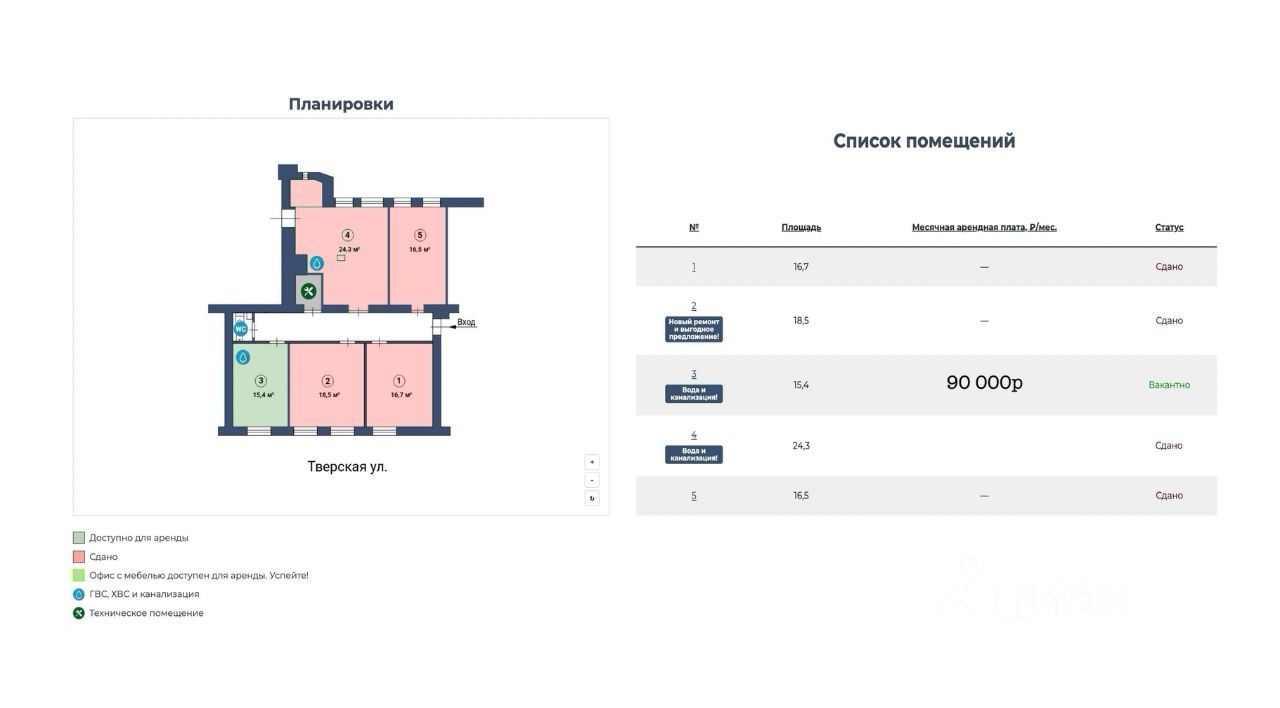 В самом центре Москвы, в Аренду предлагается Готовый офис площадью - 15,4м2. В стоимость Все включено, Офис После Ремонта, Все НОВОЕ, все помещения с Окнами, оборудованы Кондиционерами, Высокий 1й этаж, Потолки - 3,3 метра.