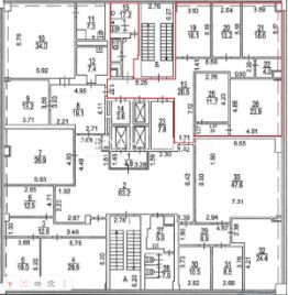 Офис расположен на 9-м этаже. Планировка кабинетная.