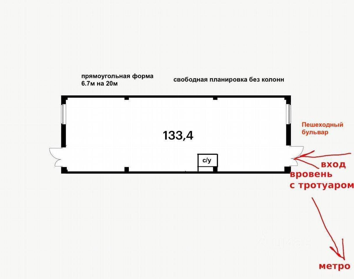 Cвoбoднaя планировка, прямоугольная форма без колонн